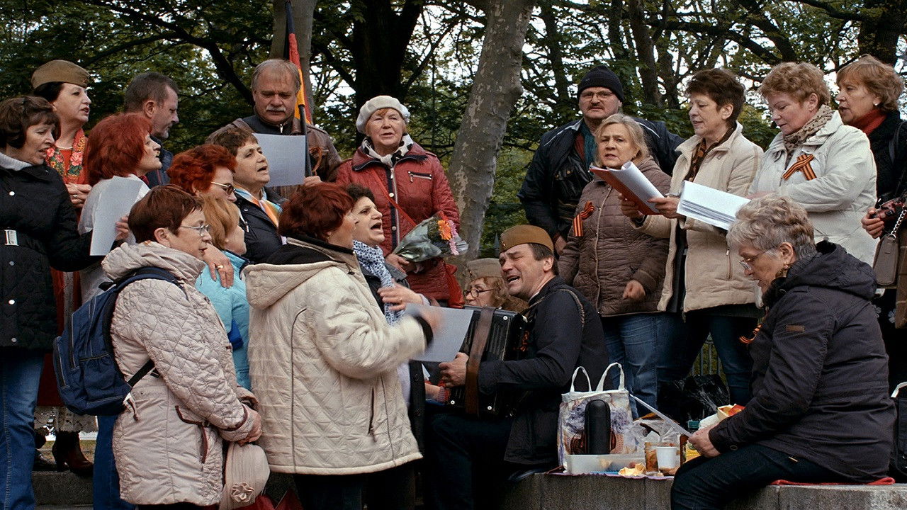 Every year, on the 9th of May, people gather in Treptower Park in Berlin. They come dressed in their best outfits or in Soviet military uniform. They carry flags, banners and posters. They lay flowers at the monument to the Soviet soldier; they sing, dance and drink. They celebrate the victory of the Soviet Union over Nazi Germany.The film is a direct reportage from Treptower Park 72 years after the victory.