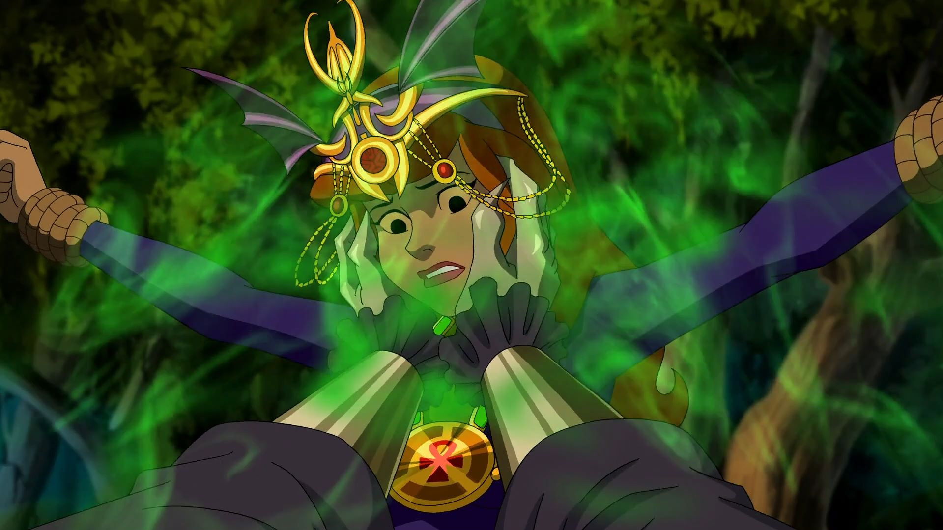 Scooby and the gang have their first musical mystery in “Scooby Doo: Music of the Vampire.” It begins when they take a sing-a-long road trip into bayou country to attend the “Vampire-Palooza Festival” – an outdoor fair dedicated to all things Draculian. At first it looks as if they’re in for some fun and lots of Southern snacks, but events soon turn scary when a real live vampire comes to life, bursts from his coffin and threatens all the townsfolk. On top of that, this baritone blood sucker seems intent on taking Daphne as his vampire bride! Could the vampire be a descendant of a famous vampire hunter who is trying to sell his book? Or perhaps he’s the local politician, who has been trying to make his name in the press by attacking the vampires as downright unwholesome. The answers are to be found in a final song-filled showdown in the swamp in which our heroes unmask one of their most macabre monsters yet.