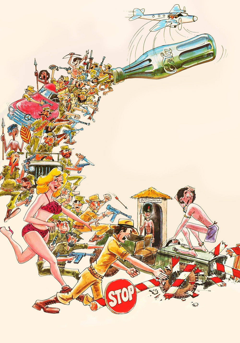 A Coca-Cola bottle dropped from an airplane raises havoc among a normally peaceful tribe of African bushmen who believe it to be a utensil of the gods.