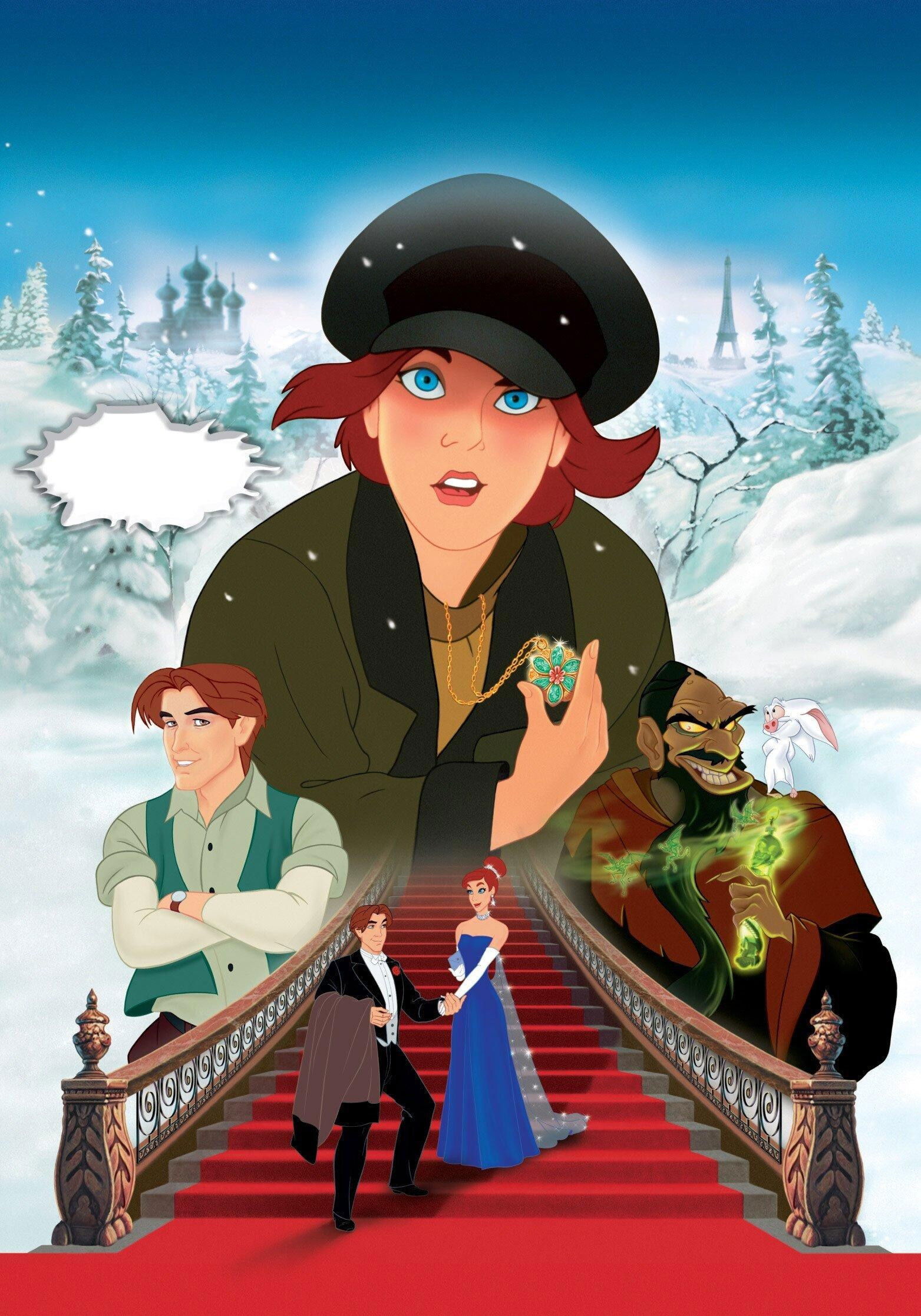 This adaptation is quite similar to the Brynner/Bergman telling of this story from 1956 - only this one features one of Disney's better baddies to liven it up and inject a bit of nasty menace to the proceedings. When Rasputin is cast aside by the Russian Imperial family, he brings down a curse on their heads that results in revolution, murder and mayhem. Shortly afterwards, a young girl is walking past a boarded-up palace one chilly evening and she breaks in. That's when she encounters the sheltering young "Dimitri" and his cohort "Vladimir". The former man takes a bit of a shine to the young girl, and after a few glances at some of the portraiture adorning the walls, concludes that she could be the eponymous Grand Duchess and their ticket to riches in Paris. She's not as willing at the con artistry as they are, but is hungry and cold and desperate so accompanies them to France where an intense course of training, a convenient friendship with "Sophie" and some perseverance sees her in the presence of her would-be grandmother, the Dowager Empress. Will the old and somewhat sceptical lady be convinced...?Meantime, the spectre of their erstwhile spiritual advisor is aware that she is perhaps on the cusp of restoring the Romanov fortunes, and so conjures up all of his dastardly might to ensure that the demise of the family is complete. Stephen Flaherty and Lynn Ahrens provide a modestly powerful score but the lavish look of the film, some colourful visual effects (mindful of "Sleeping Beauty" from 1959) and a solid script deliver an entertaining story of just how powerful love can be - even when faced with the lure of an enormous diamond tiara.